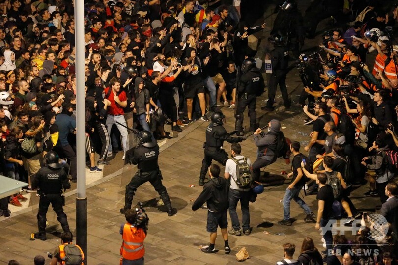 【10月15日 AFP】スペイン北東部カタルーニャ(Catalonia)自治州政府が2017年に強行し失敗した独立の試みをめぐる裁判で、同国の最高裁判所は14日、当時の州政府幹部ら9人に対し長期の禁錮刑を言い渡した。判決を受け、同自治州バルセロナでは数千人が街頭で怒りのデモを行い、空港への通行を妨害した。