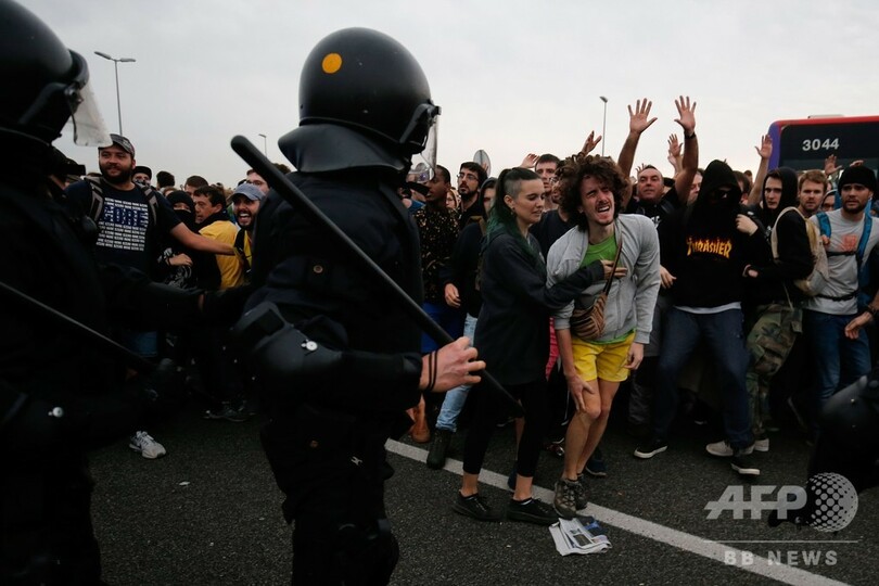 【10月15日 AFP】スペイン北東部カタルーニャ(Catalonia)自治州政府が2017年に強行し失敗した独立の試みをめぐる裁判で、同国の最高裁判所は14日、当時の州政府幹部ら9人に対し長期の禁錮刑を言い渡した。判決を受け、同自治州バルセロナでは数千人が街頭で怒りのデモを行い、空港への通行を妨害した。