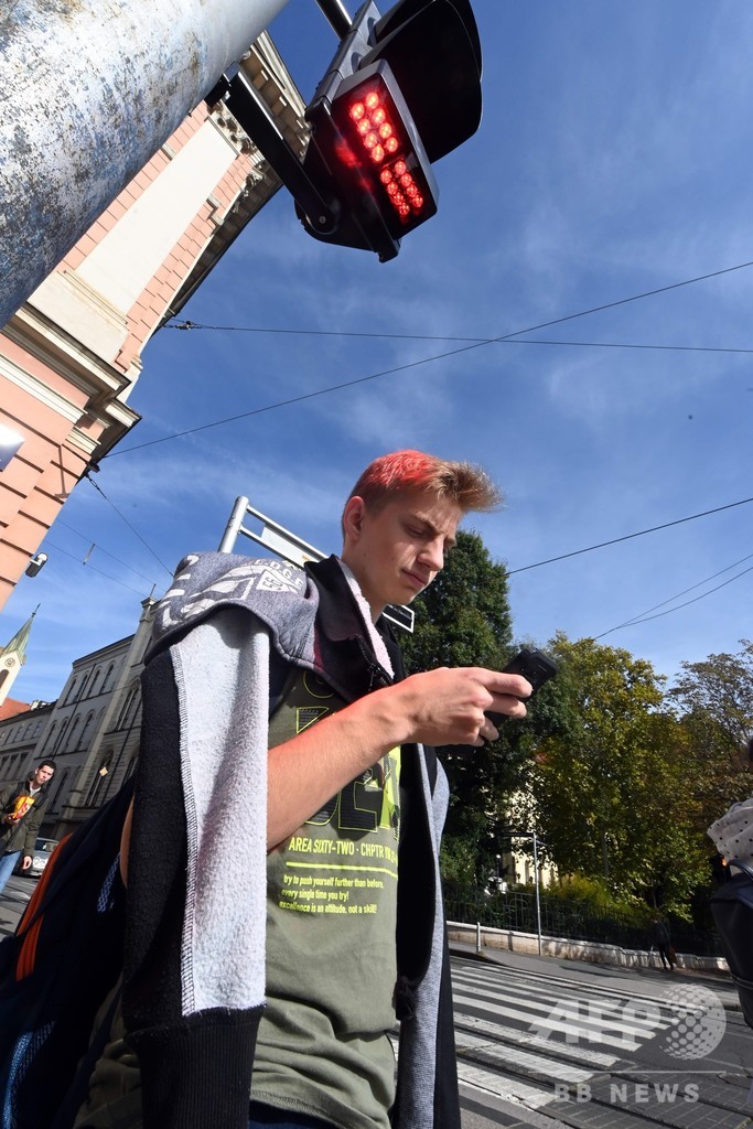 歩きスマホでも赤信号見逃さない、クロアチア首都に新型信号機
