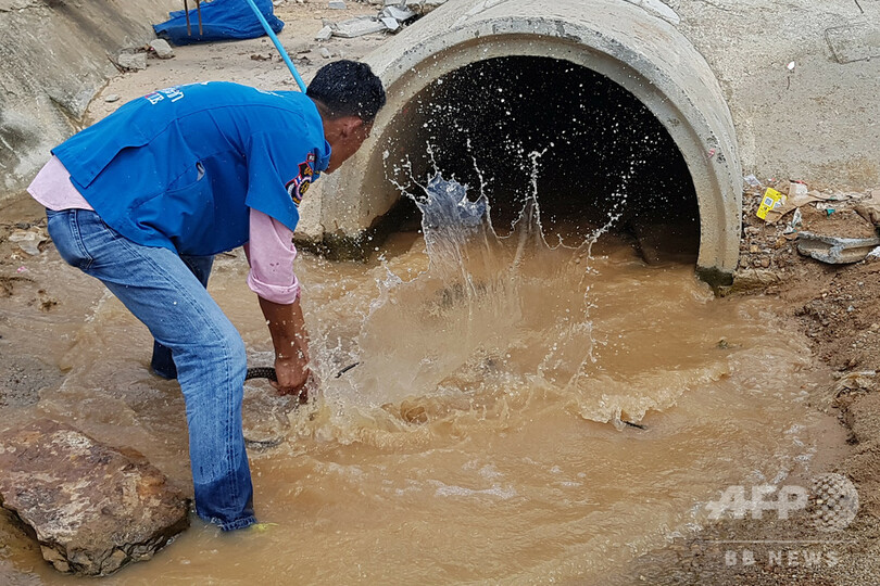 【10月15日 AFP】タイ南部の住宅地にある下水管で、体長4メートル超、重さ15キロのキングコブラが見つかり、救助団体が1時間かけて捕獲した。同団体が15日、明らかにした。これまでに捕獲した中で3番目に大きいという。