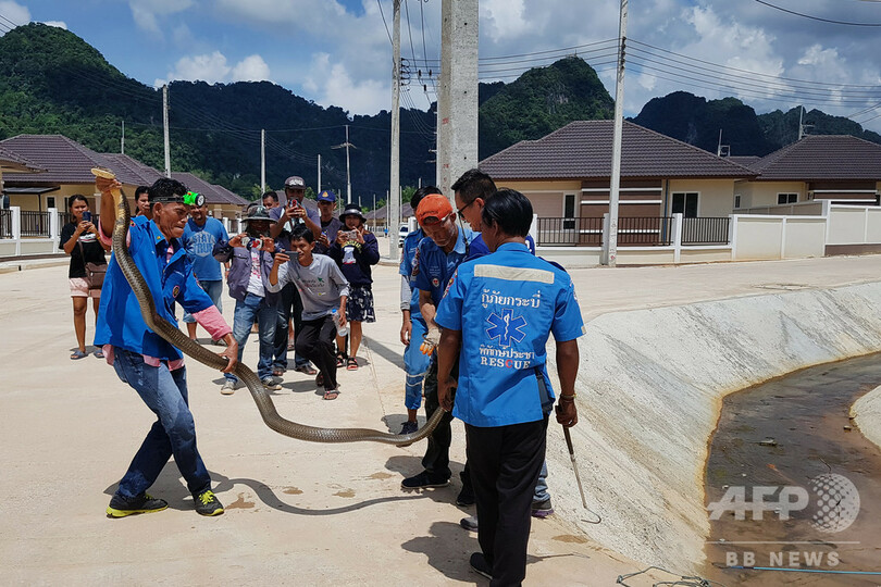 体長4mのキングコブラ、住宅地の下水管で捕獲 タイ