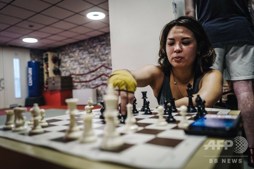【11月9日 AFP】(写真追加)滴る汗と荒い息――ニコポルはフックをかわし、アッパーカットを繰り出した後、集中力を取り戻そうと必死になりながら、チェスボードのビショップを慎重に動かした。