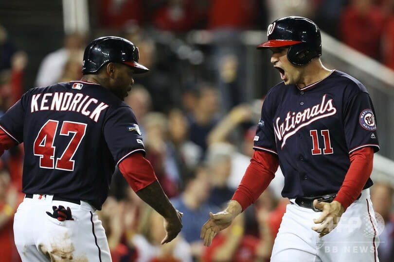 ナショナルズは22日に開幕するワールドシリーズで、ア・リーグ優勝決定シリーズを戦っているニューヨーク・ヤンキース(New York Yankees)とヒューストン・アストロズ(Houston Astros)の勝者と対戦する。(c)AFP