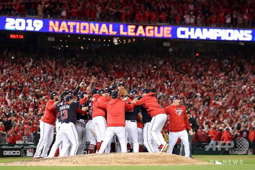 ナショナルズは22日に開幕するワールドシリーズで、ア・リーグ優勝決定シリーズを戦っているニューヨーク・ヤンキース(New York Yankees)とヒューストン・アストロズ(Houston Astros)の勝者と対戦する。(c)AFP