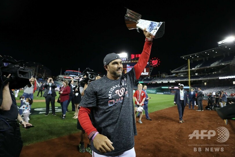 ナショナルズは22日に開幕するワールドシリーズで、ア・リーグ優勝決定シリーズを戦っているニューヨーク・ヤンキース(New York Yankees)とヒューストン・アストロズ(Houston Astros)の勝者と対戦する。(c)AFP