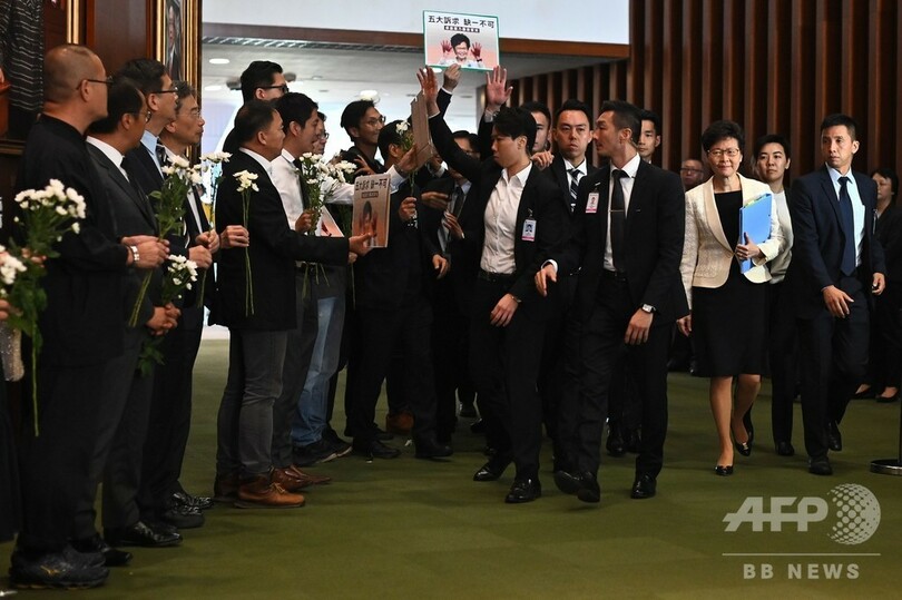 【10月17日 AFP】香港の立法会(議会)は17日、会期2日目に入ったが、林鄭月娥(キャリー・ラム、Carrie Lam)行政長官にやじを飛ばした民主派の議員らが警備員によって議場外へ排除されるなど、長官の施政方針演説が中断された前日に続き混乱した。