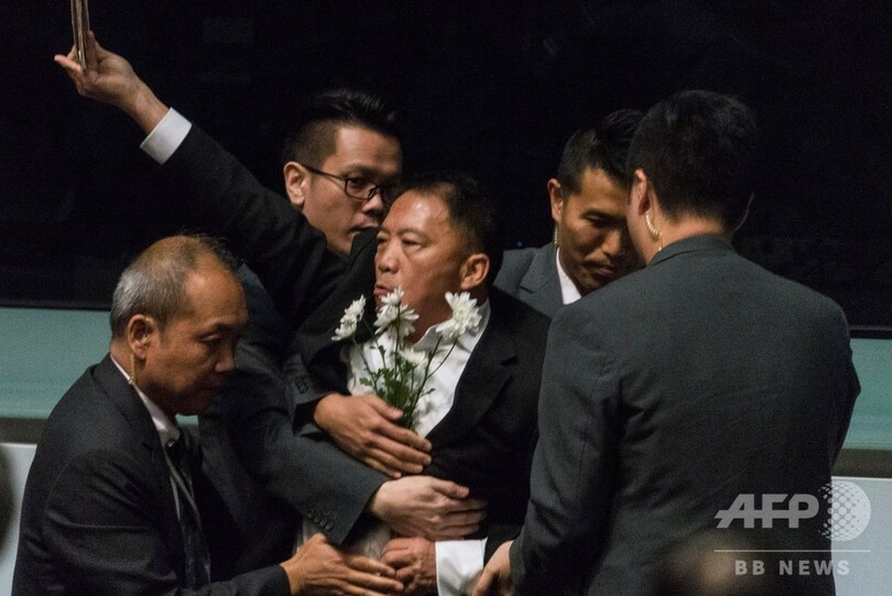 混乱続く香港議会2日目、民主派議員ら場外へ排除