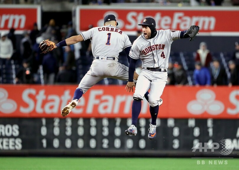 【10月18日 AFP】19MLBは17日、プレーオフのア・リーグ優勝決定シリーズ(7回戦制)が行われ、ヒューストン・アストロズ(Houston Astros)はジョージ・スプリンガー(George Springer)とカルロス・コレア(Carlos Correa)が3点本塁打を放つなどし、ニューヨーク・ヤンキース(New York Yankees)を8-3で下してシリーズ突破に王手をかけた。
