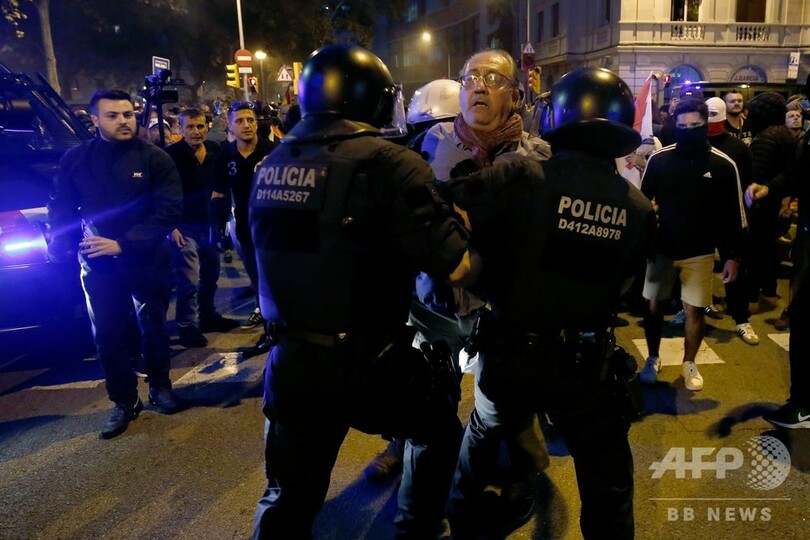 【10月18日 AFP】スペイン北東部カタルーニャ(Catalonia)自治州の州都バルセロナでは17日、独立派の州政治家9人に対する実刑判決に抗議するデモが4日目を迎え、市中心部で機動隊と新たな衝突が発生した。