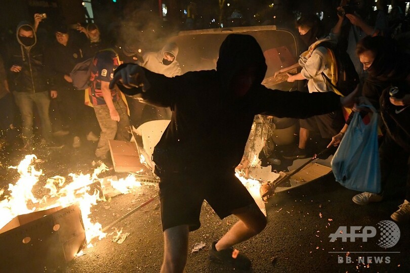 日中には市庁舎前で、授業をボイコットした学生たちや支援者らが集会を開き、州警察発表で約2万5000人が参加した。現地のAFP記者によれば、夜に入って若者たちが市中心部の道路を封鎖。「独立」と連呼しながらバリケードに火を放ったり、警官隊に向かって火炎瓶を投げ付けたりし、機動隊も応酬した。