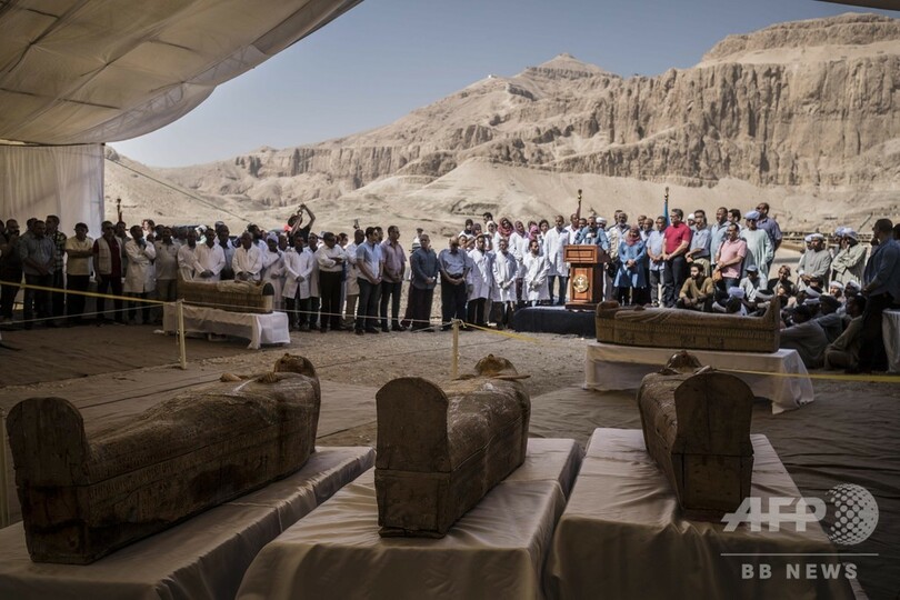 【10月20日 AFP】エジプト考古省は19日、南部ルクソール(Luxor)の墳墓群「王家の谷(Valley of the Kings)」で古代エジプトの木製のひつぎ30個が発掘されたと発表した。これだけまとまった数のひつぎが発掘されるのはまれだ。古代エジプト第22王朝(紀元前10世紀頃)時代のものだが、保存状態は良好という。