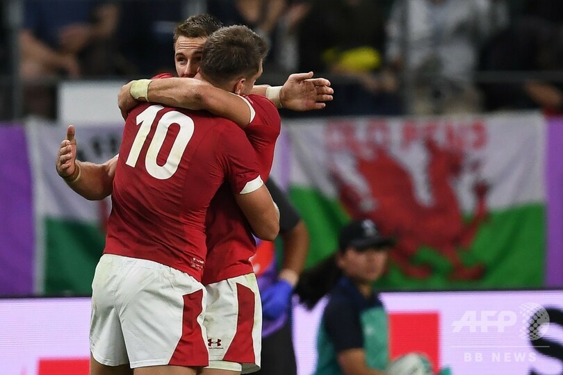 それでも、終盤にロス・モリアーティ(Ross Moriarty)がトライを記録したウェールズは、この日すべてのキックを蹴り込み10ポイントを記録したダン・ビガー(Dan Biggar)のコンバージョンで逆転を果たし、南アフリカと日本の勝者と対戦する準決勝に駒を進めた。(c)AFP