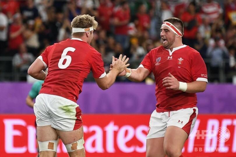 それでも、終盤にロス・モリアーティ(Ross Moriarty)がトライを記録したウェールズは、この日すべてのキックを蹴り込み10ポイントを記録したダン・ビガー(Dan Biggar)のコンバージョンで逆転を果たし、南アフリカと日本の勝者と対戦する準決勝に駒を進めた。(c)AFP