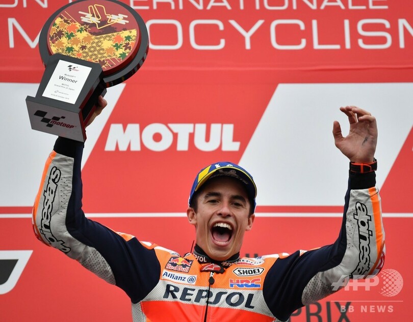 【10月20日 AFP】世界ロードレース選手権(WGP 2019)第16戦の日本GPは20日、MotoGPクラスの決勝が行われ、すでに総合優勝を確定させているレプソル・ホンダ(Repsol Honda)のマルク・マルケス(Marc Marquez、スペイン)が今季10勝目を挙げた。マルケスの日本GP制覇は、ここ4年で3回目。