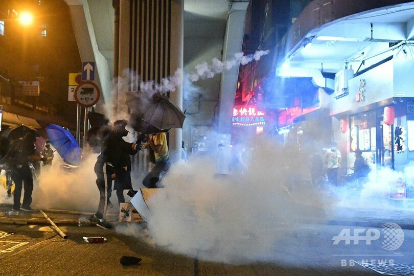 【10月21日 AFP】香港で20日、最近の民主派に対する攻撃に抗議する無許可のデモ行進が行われた。強硬派が火炎瓶を投げ店舗を破壊したため、警察はデモ隊に放水銃と催涙弾で対応した。