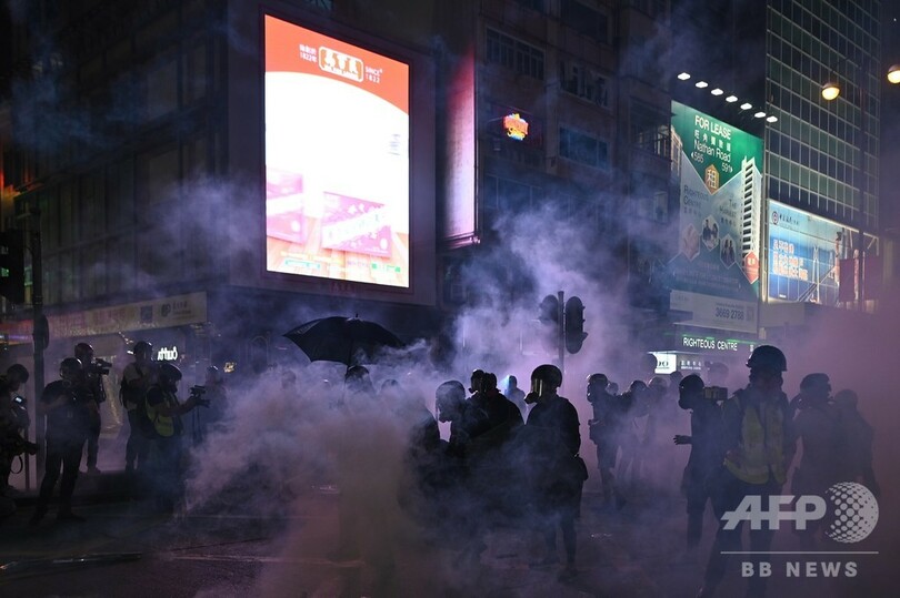 【10月21日 AFP】香港で20日、最近の民主派に対する攻撃に抗議する無許可のデモ行進が行われた。強硬派が火炎瓶を投げ店舗を破壊したため、警察はデモ隊に放水銃と催涙弾で対応した。