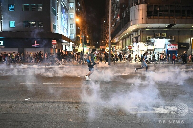 【10月21日 AFP】香港で20日、最近の民主派に対する攻撃に抗議する無許可のデモ行進が行われた。強硬派が火炎瓶を投げ店舗を破壊したため、警察はデモ隊に放水銃と催涙弾で対応した。