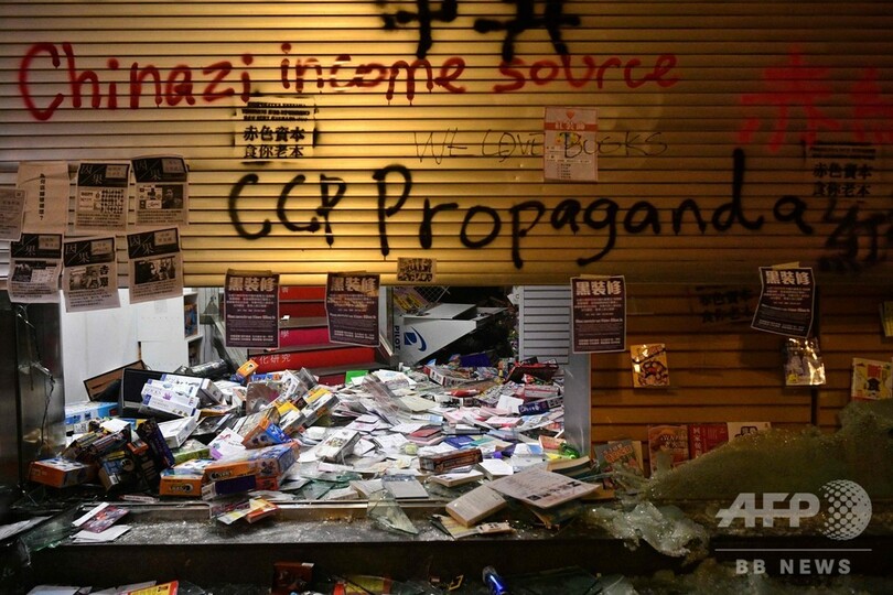 【10月21日 AFP】香港で20日、最近の民主派に対する攻撃に抗議する無許可のデモ行進が行われた。強硬派が火炎瓶を投げ店舗を破壊したため、警察はデモ隊に放水銃と催涙弾で対応した。