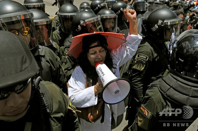 情勢が突然変わったことに憤慨した有権者らは、政府所在地ラパス(La Paz)など複数の都市で暴力的なデモを展開し、メサ氏は開票結果を受け入れないと表明。2001年から2005年まで大統領を務めたメサ氏は、モラレス氏が最高選挙裁判所(TSE)と結託して開票結果を不正に操作し決選投票を避けようとしていると非難した。