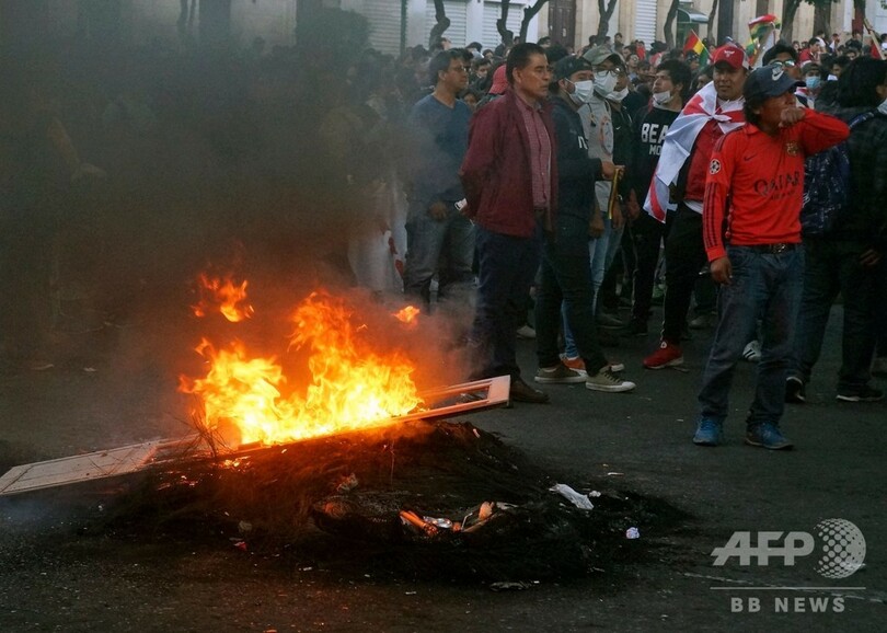 情勢が突然変わったことに憤慨した有権者らは、政府所在地ラパス(La Paz)など複数の都市で暴力的なデモを展開し、メサ氏は開票結果を受け入れないと表明。2001年から2005年まで大統領を務めたメサ氏は、モラレス氏が最高選挙裁判所(TSE)と結託して開票結果を不正に操作し決選投票を避けようとしていると非難した。