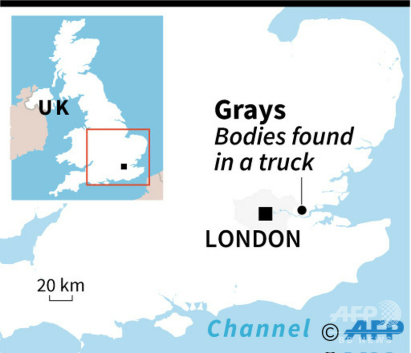 【10月23日 AFP】(更新、写真・図解追加)英南東部エセックス(Essex)州で23日、ブルガリアから来たとみられるトラックのコンテナ内に39人の遺体が見つかった。警察が明らかにした。