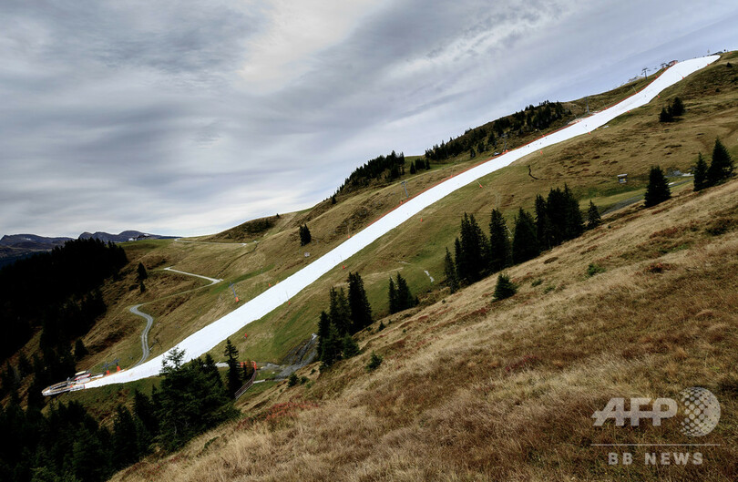 【10月30日 AFP】オーストリア・ミッタージル(Mittersill)近郊のスキーリゾート、キッツビューエル(Kitzbuehel)のレスターヘーエ(Resterhoehe)で、昨冬の貯蔵雪が敷かれたゲレンデ。緑と茶色が織り成す秋の風景に白雪の帯―。固めた滑降コースでスキーシーズンをいち早く開始することについて、環境活動家と同国の人気リゾート地の関係者の間で白熱した議論が巻き起こった。(c)AFP