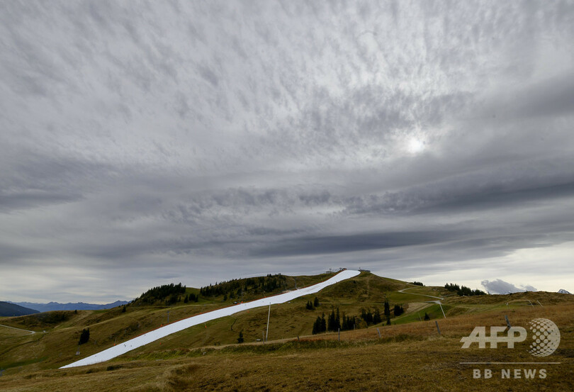 【10月30日 AFP】オーストリア・ミッタージル(Mittersill)近郊のスキーリゾート、キッツビューエル(Kitzbuehel)のレスターヘーエ(Resterhoehe)で、昨冬の貯蔵雪が敷かれたゲレンデ。緑と茶色が織り成す秋の風景に白雪の帯―。固めた滑降コースでスキーシーズンをいち早く開始することについて、環境活動家と同国の人気リゾート地の関係者の間で白熱した議論が巻き起こった。(c)AFP