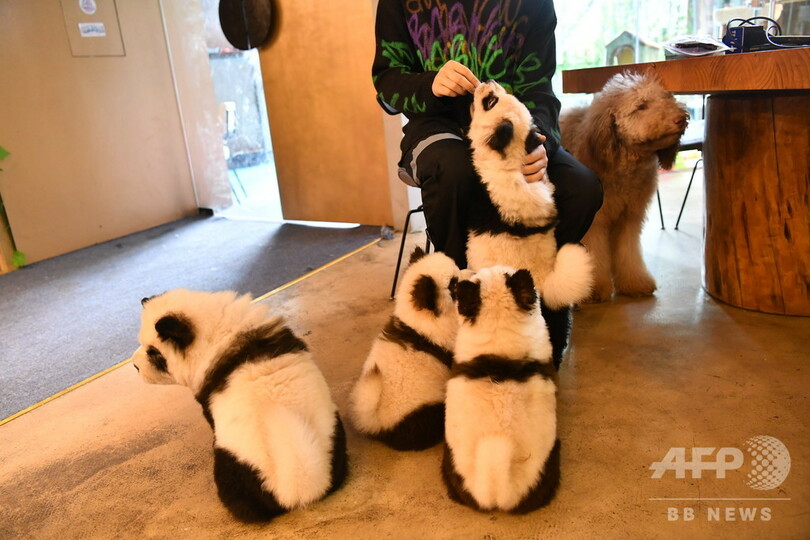 これらの「パンダ犬」は海外からの輸入犬で、元の犬種はチャウチャウだが、専門的な染色が施された結果、無邪気で愛くるしい「パンダ犬」に変身した。