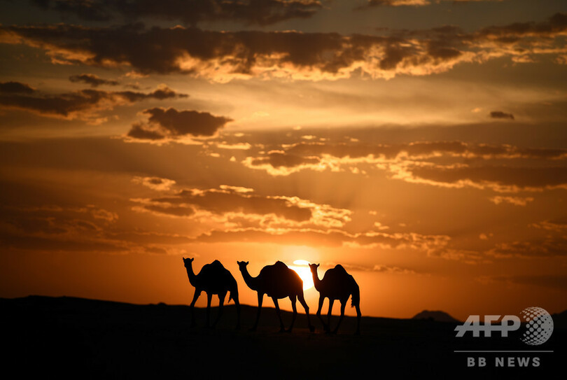 【11月1日 AFP】ダカールラリー(Dakar Rally 2020)のコース検分が実施される中、サウジアラビアの砂漠を行くラクダ。ラリーは2020年1月5日に同国ジッダ(Jeddah)で開幕し、17日まで続く。(c)AFP