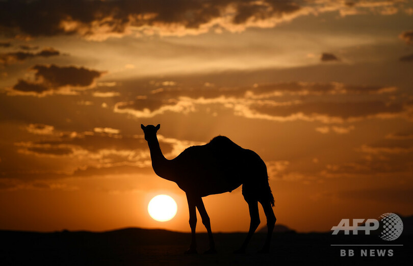 【11月1日 AFP】ダカールラリー(Dakar Rally 2020)のコース検分が実施される中、サウジアラビアの砂漠を行くラクダ。ラリーは2020年1月5日に同国ジッダ(Jeddah)で開幕し、17日まで続く。(c)AFP