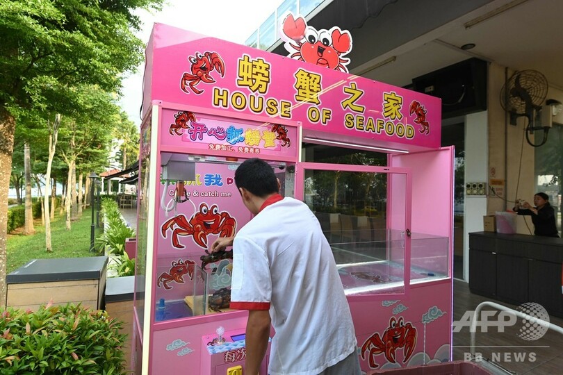 【10月25日 AFP】シンガポールの海鮮レストランがカニをつり上げて捕獲するクレーンゲーム機を店先に置いたところ、カニを虐待しているとネット上で激しい批判が巻き起こっため、店は24日、このサービスの中止に追い込まれた。