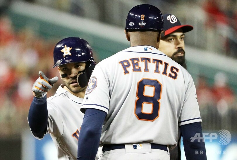 【10月26日 AFP】19MLBは25日、ワールドシリーズ(7回戦制)の第3戦が行われ、ヒューストン・アストロズ(Houston Astros)はホセ・アルトゥーベ(Jose Altuve)とロビンソン・チリノス(Robinson Chirinos)の活躍などでワシントン・ナショナルズ(Washington Nationals)を4-1で下し、シリーズ戦績を1勝2敗とした。