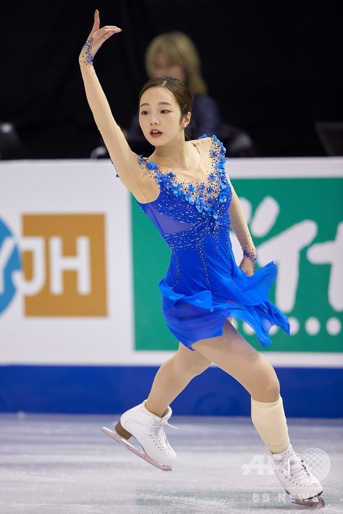 トリプルアクセルにミスが出た紀平は約10点離れた230.33点で2位、こちらもシニアGPデビューとなったユは3位に入った。(c)AFP