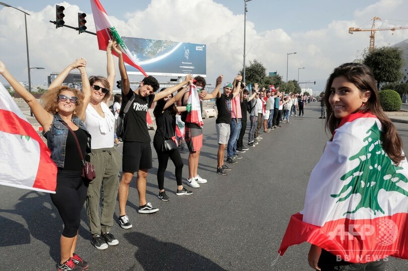 【10月28日 AFP】反政府デモが続くレバノンで27日、デモの参加者らが北部トリポリ(Tripoli)から首都ベイルートを通り南部ティール(Tyre)まで、全国170キロに及ぶ前例のない「人間の鎖」を作り、宗派や党派を超えた団結を示した。