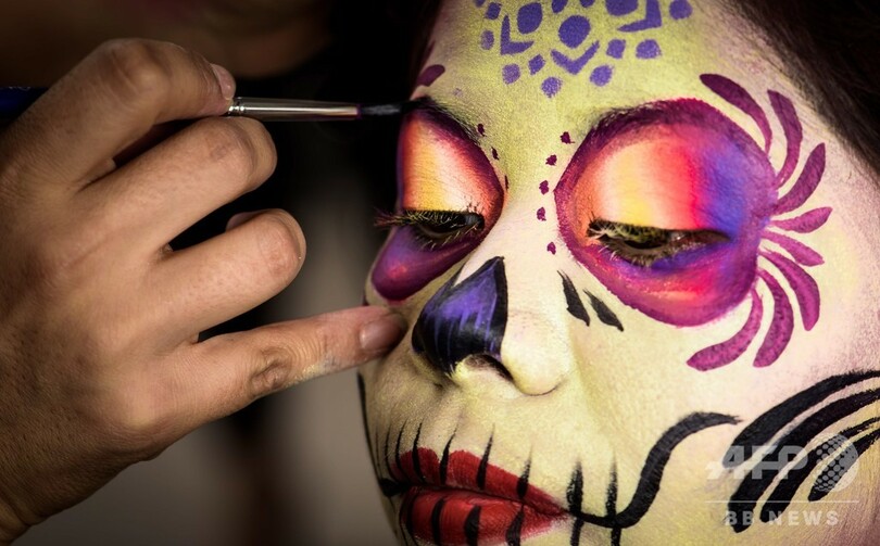 【10月28日 AFP】メキシコの首都メキシコ市で26日、来月の「死者の日(Day of the Dead)」を前に、シンボルとなっている骸骨の貴婦人「カトリーナ(Catrina)」に扮(ふん)した人々が、レフォルマ通り(Reforma Avenue)を練り歩いた。