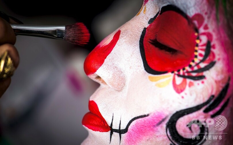 【10月28日 AFP】メキシコの首都メキシコ市で26日、来月の「死者の日(Day of the Dead)」を前に、シンボルとなっている骸骨の貴婦人「カトリーナ(Catrina)」に扮(ふん)した人々が、レフォルマ通り(Reforma Avenue)を練り歩いた。
