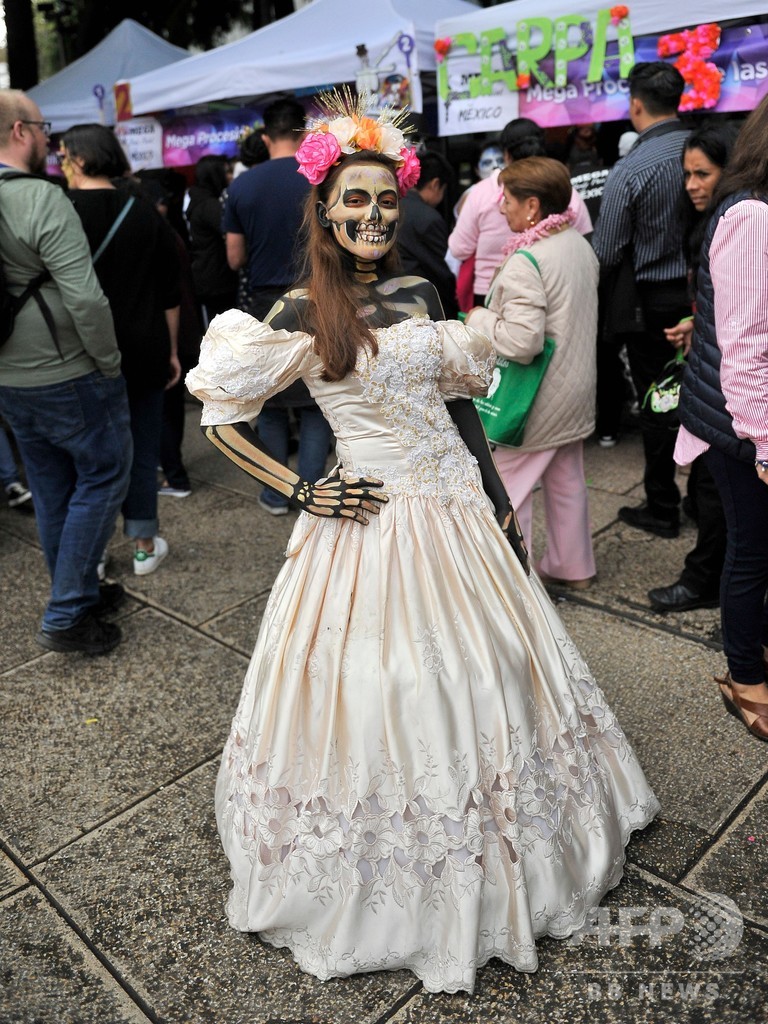 骸骨の貴婦人が通りを練り歩く 「死者の日」控え メキシコ