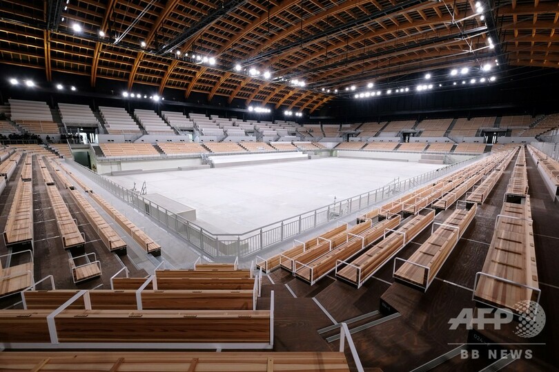 座席は長椅子タイプで、収容人数は1万2000人。五輪の体操と新体操、トランポリン、パラリンピックのボッチャが行われ、大会後は展示場として利用されることになっている。また組織委員会によれば、座席などに使った木材の一部は、展示場や学校などの他施設で再利用する計画だという。(c)AFP
