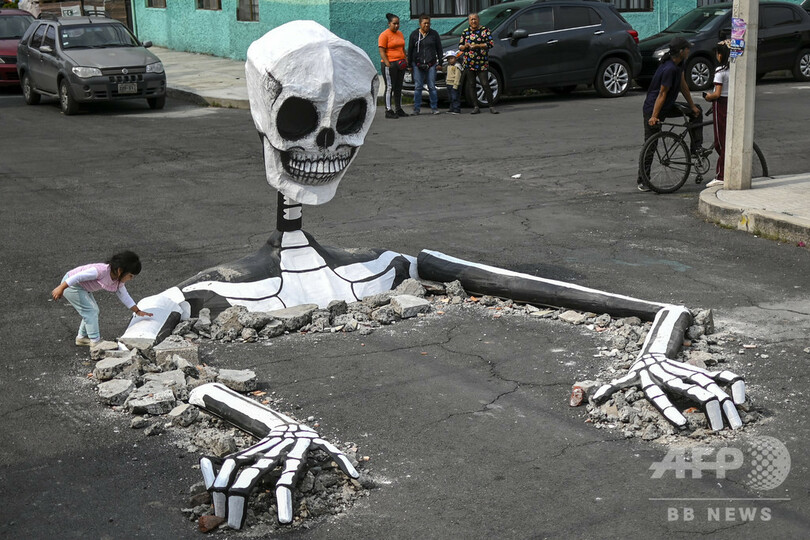 ニュース ライフ 今日の1枚 【今日の1枚】ガイコツ、アスファルトを突き破って登場 2019年11月2日 12:15 発信地:メキシコ市/メキシコ [ メキシコ 中南米 ] このニュースをシェア ‹ › ❮ 1/3 ❯ メキシコ・メキシコ市トラウアック区の通りで、「死者の日」を前に、芸術家たちが段ボールで作った特大の頭蓋骨などを触る少女(2019年10月28日撮影)。(c)Pedro PARDO / AFP 画像作成中 ! 【11月2日 AFP】メキシコ・メキシコ市トラウアック(Tlahuac)区の通りで、「死者の日(Day of the Dead)」を前に、芸術家たちが段ボールで作った特大の頭蓋骨などを触る少女。(c)AFP ライフ 一覧へ> メディア・報道関係・法人の方向け 写真・動画 購入のお問合せ>