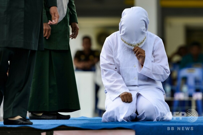 アチェ州イスラム法学者評議会(MPU)のメンバーであるこの男性は先月、既婚女性と抱き合っているところを捕らえられ、この日、州都バンダアチェ(Banda Aceh)で覆面を着用した宗教当局者により背中を28回むち打たれた。男性は、とう製のむちが振るわれるたびに顔をゆがめ、体をこわばらせた。その後、不倫相手の女性も23回前後むち打たれた。