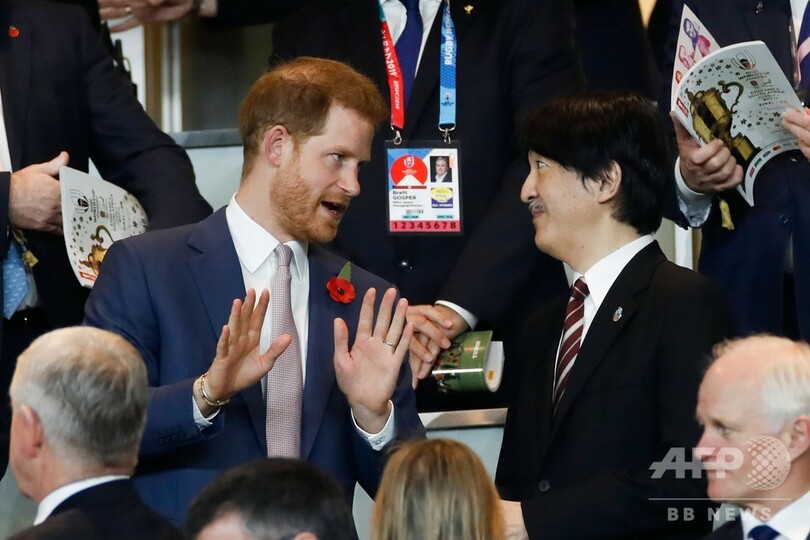 英ヘンリー王子、ラグビーW杯決勝を観戦 秋篠宮ご夫妻と談笑