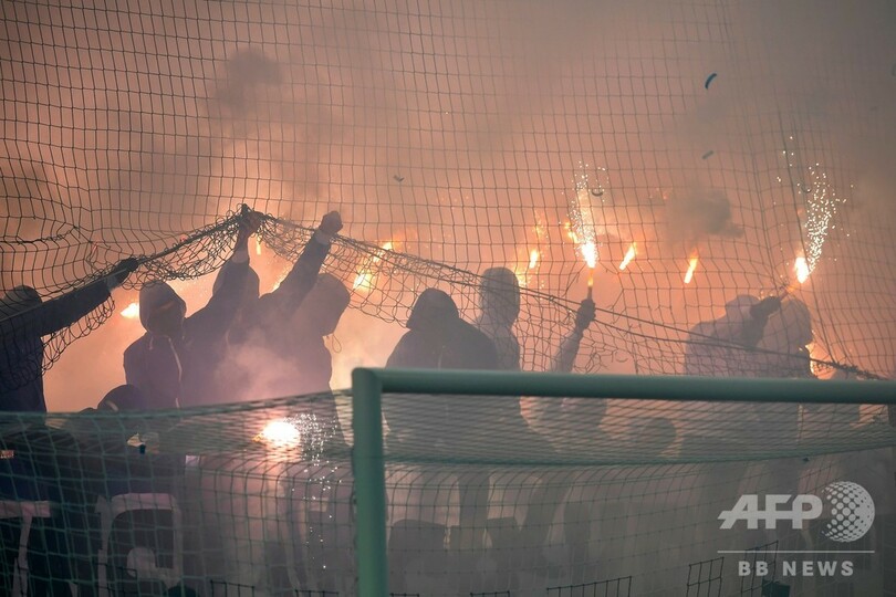 しかし後半開始直後に発煙筒がピッチに投げ込まれたため、主審は両チームにベンチに下がるよう指示し試合は6分間中断した。