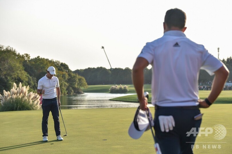 それでもマキロイは、同じくパー5の18番で行われたプレーオフではいかなる疑念も消し去り、連覇を目指したシャウフェレのドライバーショットがそれる中でフェアウエーをとらえてこのホールを制し、自身初となる大会タイトルと賞金174万5000ドル(約1億9000万円)を手にした。(c)AFP