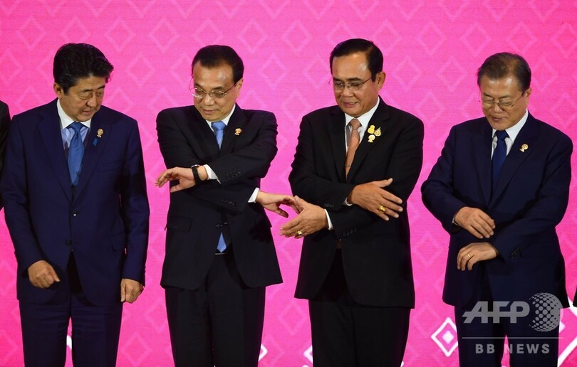 【11月4日 AFP】安倍晋三(Shinzo Abe)首相と韓国の文在寅(ムン・ジェイン、Moon Jae-in)大統領は4日、東南アジア諸国連合(ASEAN)関連会議が開かれているタイ・バンコクで会談を行った。韓国大統領府が明らかにした。日韓は元徴用工訴訟問題や輸出規制などをめぐり関係が悪化しており、両国間で首脳会談が行われるのはおよそ1年ぶり。