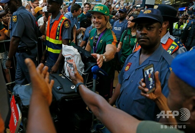 W杯を制した選手とコーチ陣、スタッフは、全員が一度に乗れる便がなかったため、分かれて帰国の途に就いた。まずは2日前にワールドラグビー(World Rugby)の年間最優秀選手に選出されたピーター・ステフ・デュトイ(Pieter-Steph Du Toit)やファフ・デクラーク(Faf de Klerk)らが登場。そして約4時間後、主将のシヤ・コリシ(Siya Kolisi)やラシー・エラスムス(Rassie Erasmus)ヘッドコーチ(HC)らが姿を現し、熱烈な歓迎を受けた。
