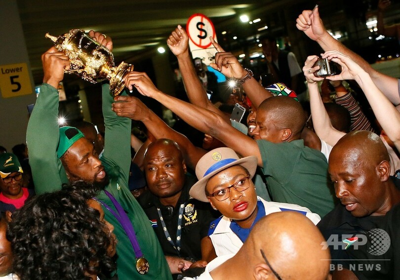 W杯を制した選手とコーチ陣、スタッフは、全員が一度に乗れる便がなかったため、分かれて帰国の途に就いた。まずは2日前にワールドラグビー(World Rugby)の年間最優秀選手に選出されたピーター・ステフ・デュトイ(Pieter-Steph Du Toit)やファフ・デクラーク(Faf de Klerk)らが登場。そして約4時間後、主将のシヤ・コリシ(Siya Kolisi)やラシー・エラスムス(Rassie Erasmus)ヘッドコーチ(HC)らが姿を現し、熱烈な歓迎を受けた。