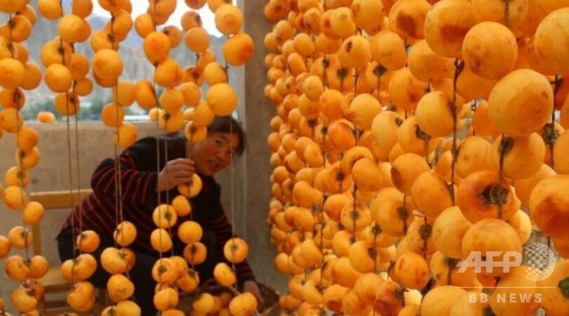 【11月11日 CNS】中国伝統の季節の区分・二十四節気の一つ「霜降(そうこう)」が過ぎ、中国・甘粛省(Gansu)隴南市(Longnan)賈昌村(Jiachang)の農民たちが柿を干す作業を始めた。子どももお手伝いに励み、どの家屋も黄金色の干し柿でいっぱいとなっている。
