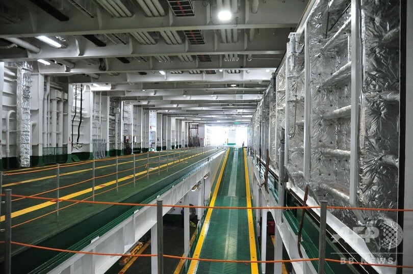 客室は複数の等級に分かれ、船上には多目的ホール、子どものプレースペース、屋外バー、シアターなどのレジャー施設を備えている。エレベーター3台が装備され、ヘリコプターも発着できる。(c)CNS/JCM/AFPBB News
