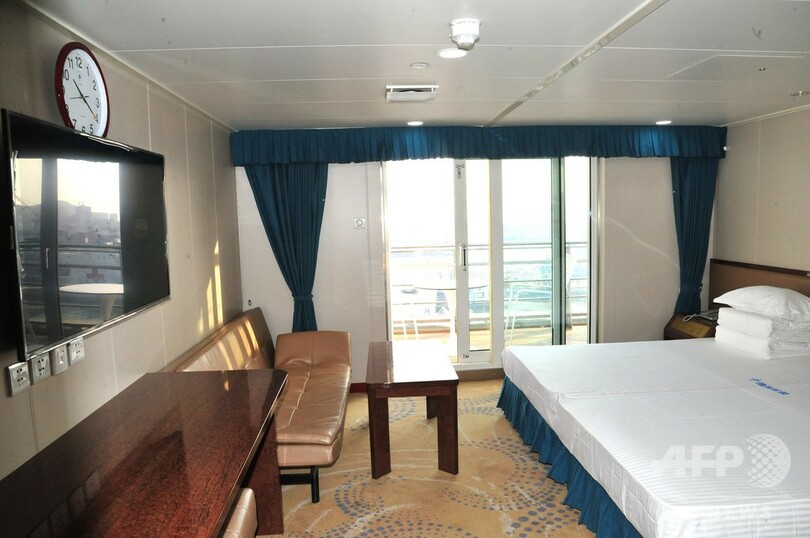 客室は複数の等級に分かれ、船上には多目的ホール、子どものプレースペース、屋外バー、シアターなどのレジャー施設を備えている。エレベーター3台が装備され、ヘリコプターも発着できる。(c)CNS/JCM/AFPBB News