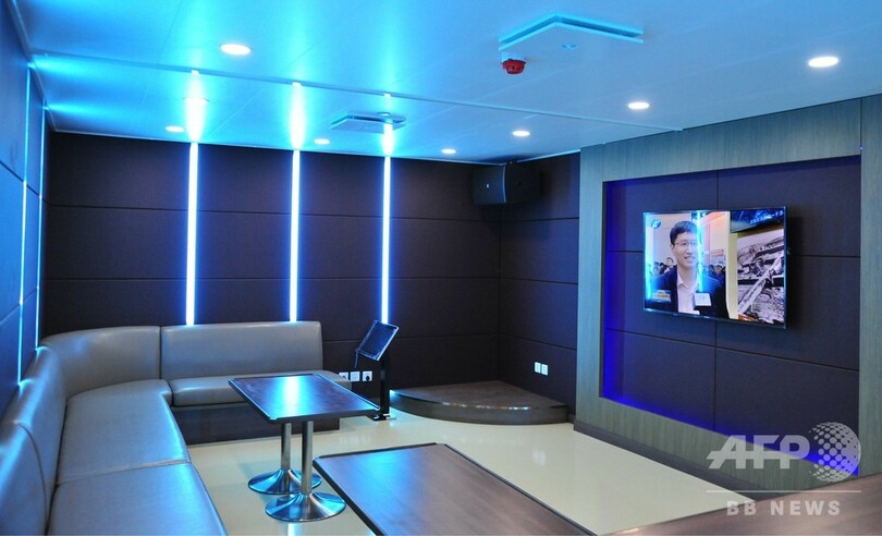客室は複数の等級に分かれ、船上には多目的ホール、子どものプレースペース、屋外バー、シアターなどのレジャー施設を備えている。エレベーター3台が装備され、ヘリコプターも発着できる。(c)CNS/JCM/AFPBB News
